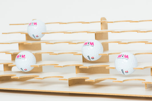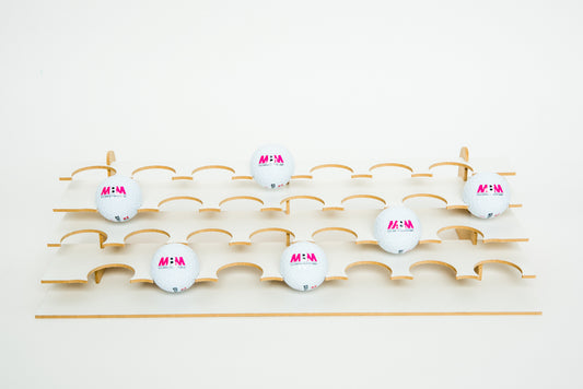 Einfach aufzubauendes und funktionelles Golfball Regal für bis zu 60 Golfbälle.